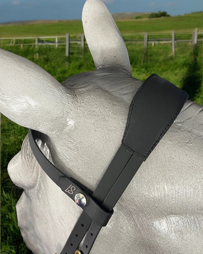 Features slightly longer clearance and no padding, allowing the headpiece to sit further away from the horse’s ears, reducing irritation.