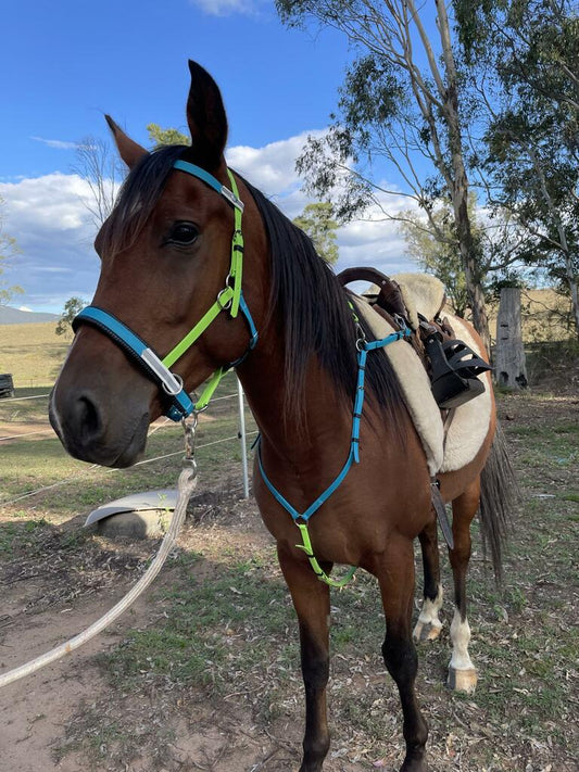 Reflective Multi Bridle - Apple Green, Lagune Blue & White Reflective